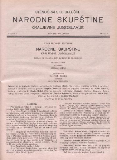 SI AS 2058/27, Stenografske beležke Narodne skupščine Kraljevine Jugoslavije, 1936