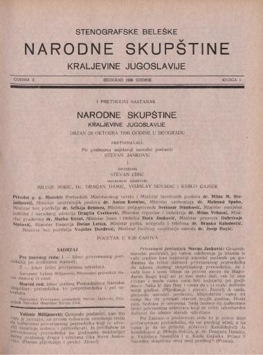 SI AS 2058/28, Stenografske beležke Narodne skupščine Kraljevine Jugoslavije, 1936-1937