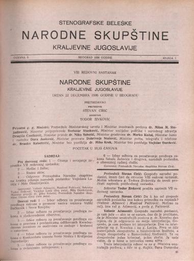 SI AS 2058/28, Stenografske beležke Narodne skupščine Kraljevine Jugoslavije, 1936-1937