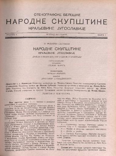 SI AS 2058/28, Stenografske beležke Narodne skupščine Kraljevine Jugoslavije, 1936-1937