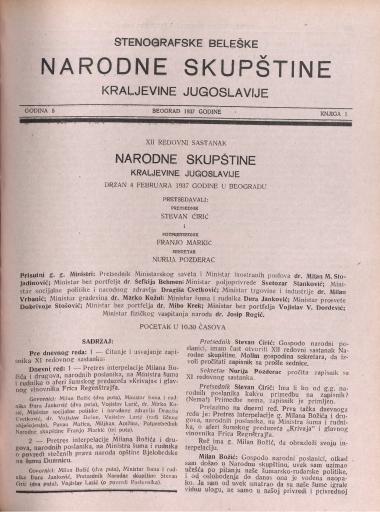 SI AS 2058/28, Stenografske beležke Narodne skupščine Kraljevine Jugoslavije, 1936-1937