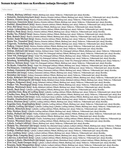 Seznam krajevnih imen na Koroškem (sedanja Slovenija) leta 1910