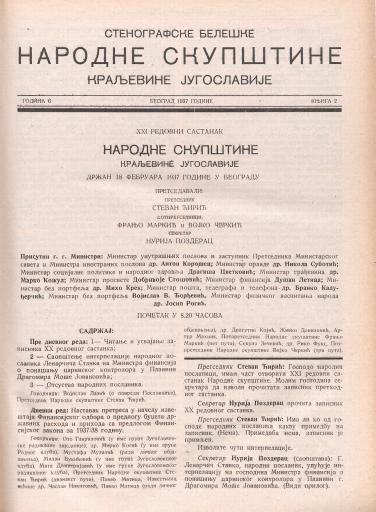 SI AS 2058/29, Stenografske beležke Narodne skupščine Kraljevine Jugoslavije, 1937