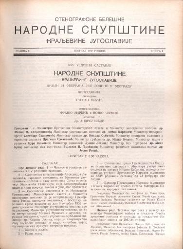 SI AS 2058/29, Stenografske beležke Narodne skupščine Kraljevine Jugoslavije, 1937