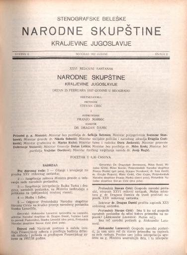 SI AS 2058/29, Stenografske beležke Narodne skupščine Kraljevine Jugoslavije, 1937