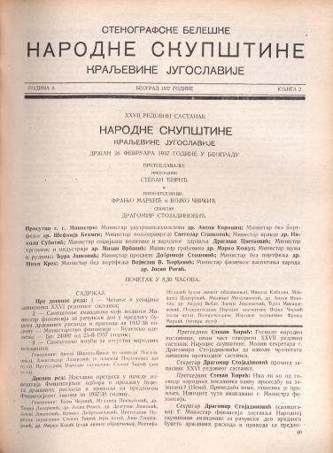 SI AS 2058/29, Stenografske beležke Narodne skupščine Kraljevine Jugoslavije, 1937