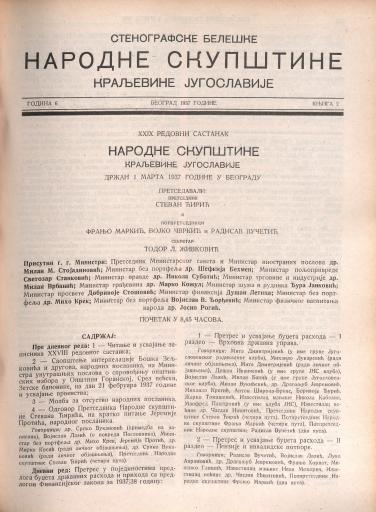 SI AS 2058/29, Stenografske beležke Narodne skupščine Kraljevine Jugoslavije, 1937
