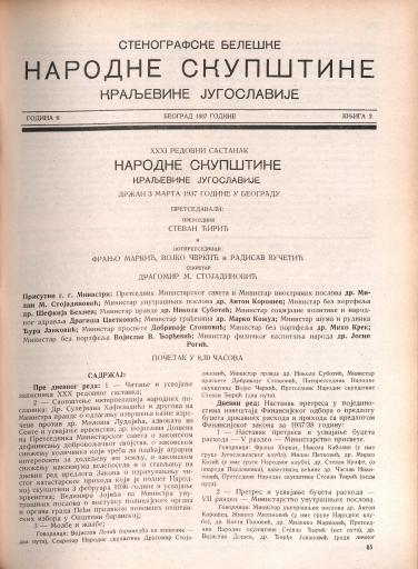 SI AS 2058/29, Stenografske beležke Narodne skupščine Kraljevine Jugoslavije, 1937