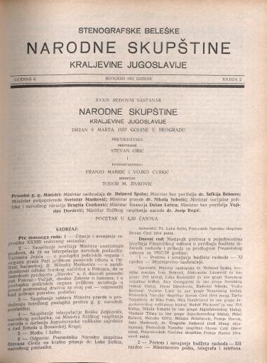 SI AS 2058/29, Stenografske beležke Narodne skupščine Kraljevine Jugoslavije, 1937