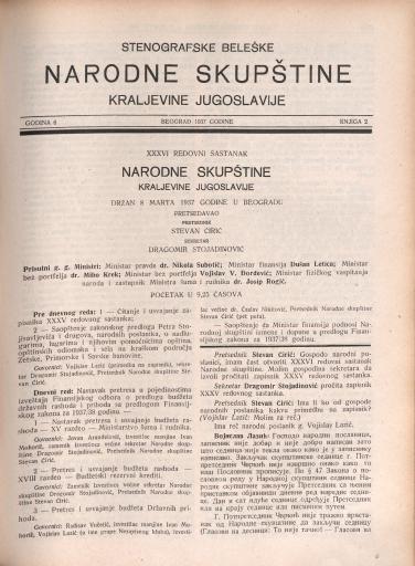 SI AS 2058/29, Stenografske beležke Narodne skupščine Kraljevine Jugoslavije, 1937