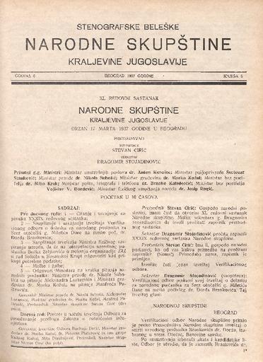 SI AS 2058/30, Stenografske beležke Narodne skupščine Kraljevine Jugoslavije, 1937