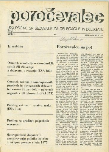 Poročevalec Skupščine SR Slovenije za delegacije in delegate, 1975, št. 1