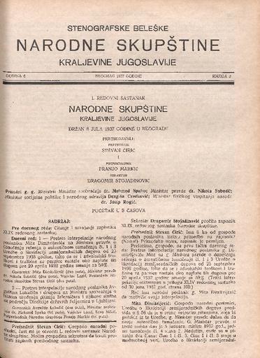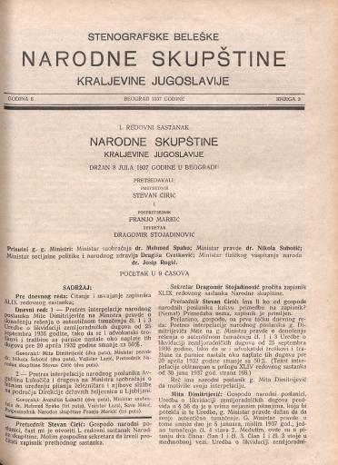 SI AS 2058/30, Stenografske beležke Narodne skupščine Kraljevine Jugoslavije, 1937