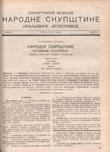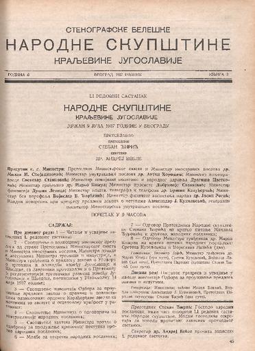 SI AS 2058/30, Stenografske beležke Narodne skupščine Kraljevine Jugoslavije, 1937