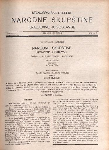 SI AS 2058/30, Stenografske beležke Narodne skupščine Kraljevine Jugoslavije, 1937