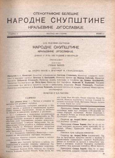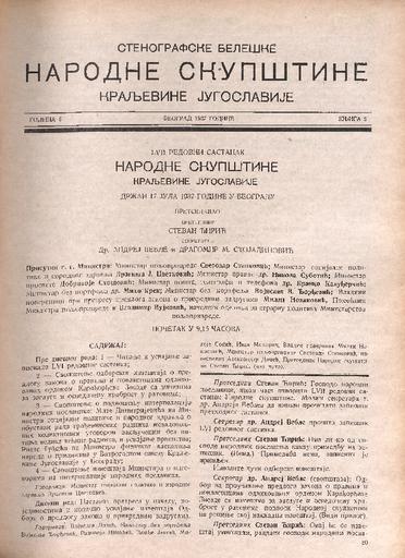 SI AS 2058/30, Stenografske beležke Narodne skupščine Kraljevine Jugoslavije, 1937