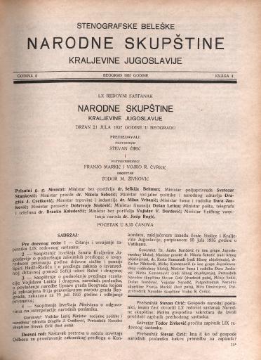 SI AS 2058/30, Stenografske beležke Narodne skupščine Kraljevine Jugoslavije, 1937