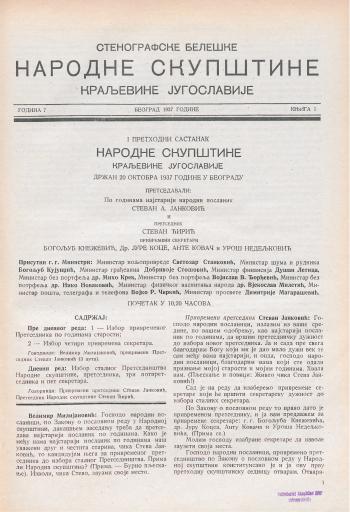 SI AS 2058/31, Stenografske beležke Narodne skupščine Kraljevine Jugoslavije, 1937-1938