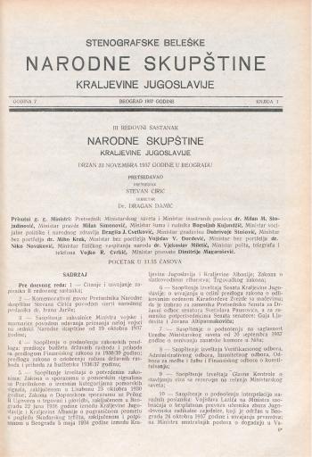 SI AS 2058/31, Stenografske beležke Narodne skupščine Kraljevine Jugoslavije, 1937-1938