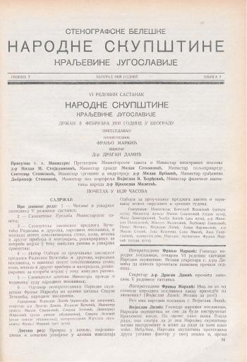 SI AS 2058/31, Stenografske beležke Narodne skupščine Kraljevine Jugoslavije, 1937-1938