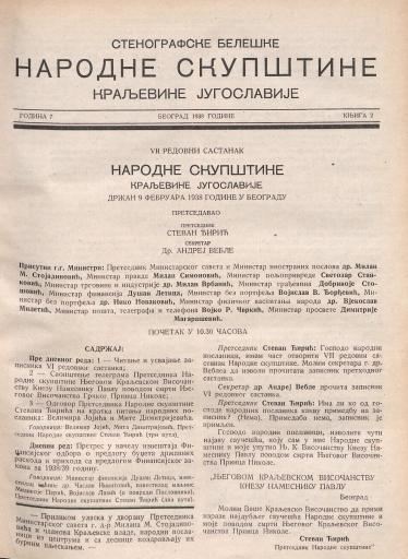 SI AS 2058/32, Stenografske beležke Narodne skupščine Kraljevine Jugoslavije, 1938