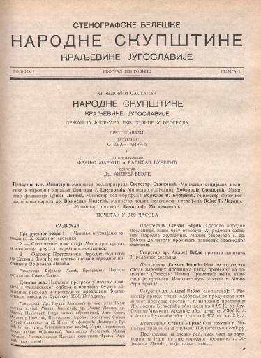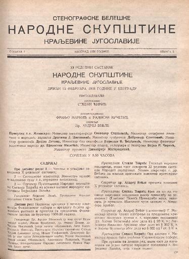 SI AS 2058/32, Stenografske beležke Narodne skupščine Kraljevine Jugoslavije, 1938