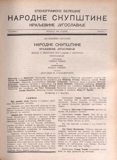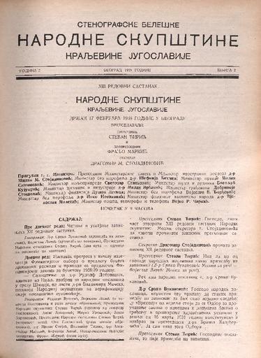 SI AS 2058/32, Stenografske beležke Narodne skupščine Kraljevine Jugoslavije, 1938