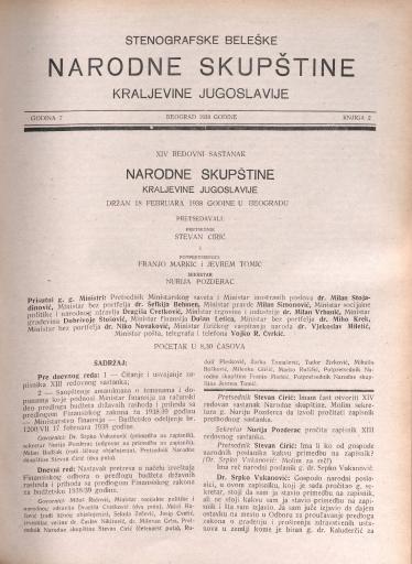SI AS 2058/32, Stenografske beležke Narodne skupščine Kraljevine Jugoslavije, 1938