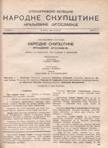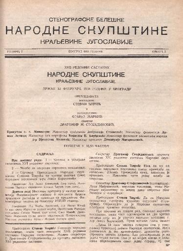 SI AS 2058/32, Stenografske beležke Narodne skupščine Kraljevine Jugoslavije, 1938