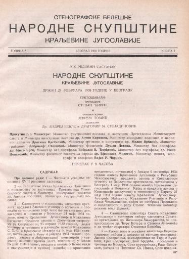 SI AS 2058/32, Stenografske beležke Narodne skupščine Kraljevine Jugoslavije, 1938
