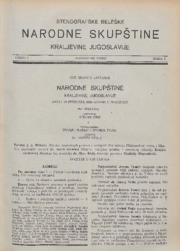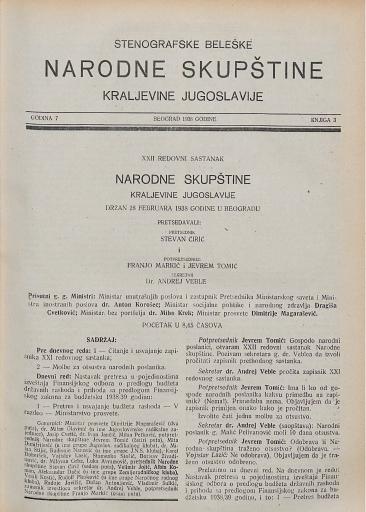 SI AS 2058/33, Stenografske beležke Narodne skupščine Kraljevine Jugoslavije, 1938
