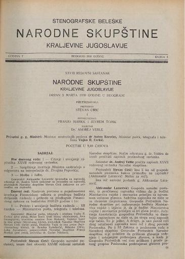 SI AS 2058/33, Stenografske beležke Narodne skupščine Kraljevine Jugoslavije, 1938