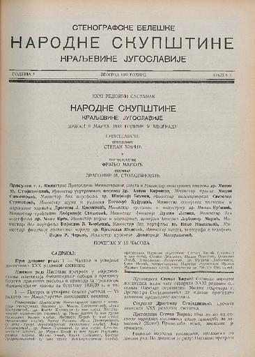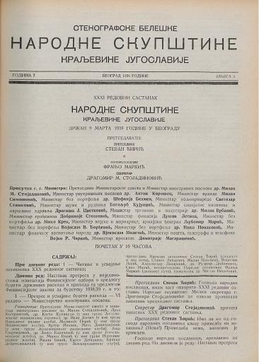 SI AS 2058/33, Stenografske beležke Narodne skupščine Kraljevine Jugoslavije, 1938