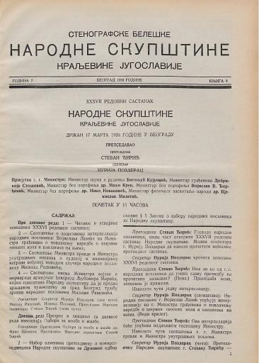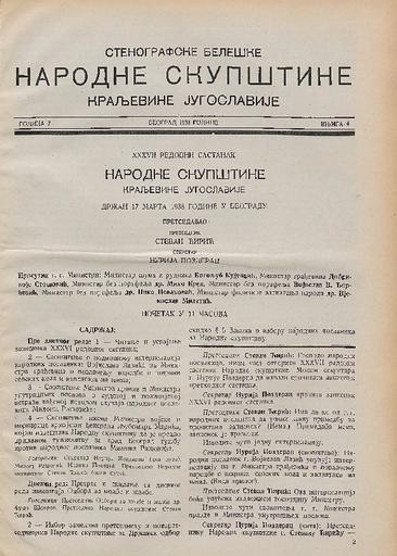 SI AS 2058/33, Stenografske beležke Narodne skupščine Kraljevine Jugoslavije, 1938