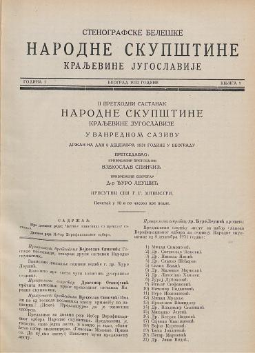 SI AS 2058/34, Stenografske beležke Narodne skupščine Kraljevine Jugoslavije, 1931-1932