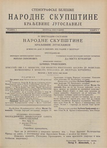SI AS 2058/34, Stenografske beležke Narodne skupščine Kraljevine Jugoslavije, 1931-1932