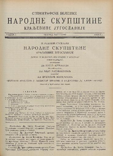 SI AS 2058/34, Stenografske beležke Narodne skupščine Kraljevine Jugoslavije, 1931-1932