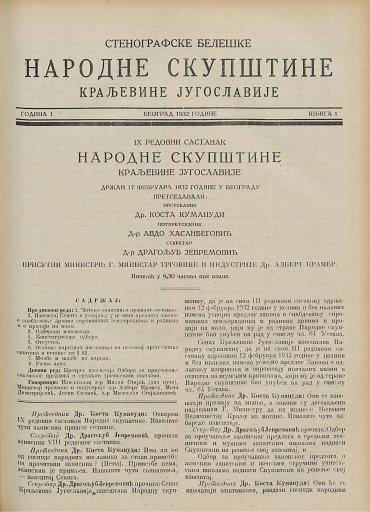 IX. redovni sastanak (17. februar 1932, Beograd)