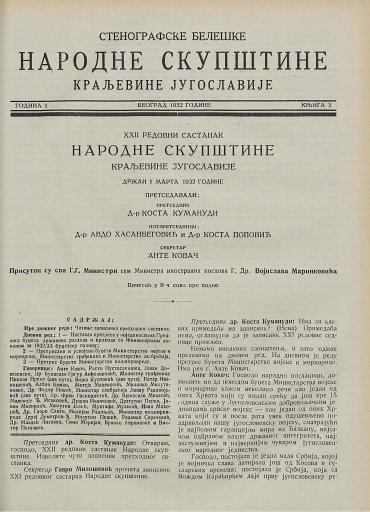 XXII. redovni sastanak (7. mart 1932, Beograd)