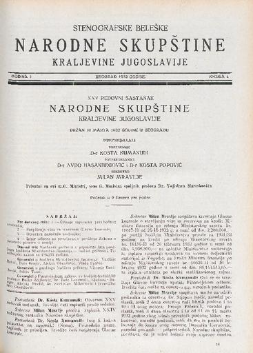 SI AS 2058/35, Stenografske beležke Narodne skupščine Kraljevine Jugoslavije, 1932