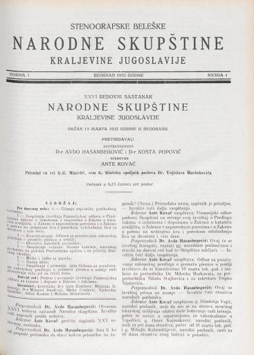 SI AS 2058/35, Stenografske beležke Narodne skupščine Kraljevine Jugoslavije, 1932