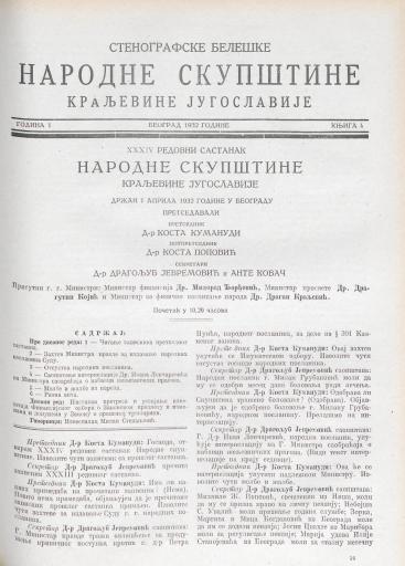 SI AS 2058/35, Stenografske beležke Narodne skupščine Kraljevine Jugoslavije, 1932