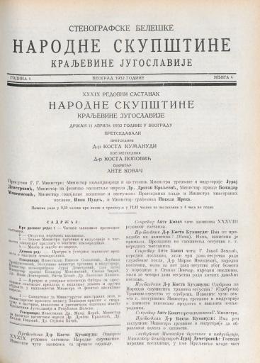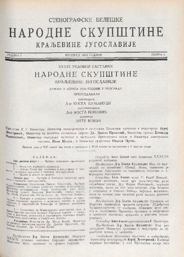 SI AS 2058/35, Stenografske beležke Narodne skupščine Kraljevine Jugoslavije, 1932