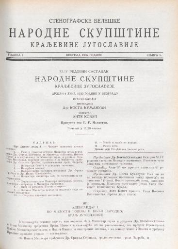 SI AS 2058/35, Stenografske beležke Narodne skupščine Kraljevine Jugoslavije, 1932