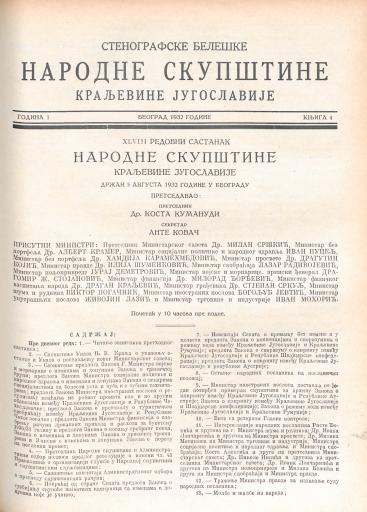 SI AS 2058/35, Stenografske beležke Narodne skupščine Kraljevine Jugoslavije, 1932