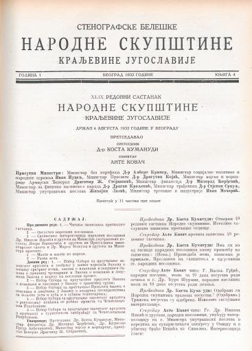 SI AS 2058/35, Stenografske beležke Narodne skupščine Kraljevine Jugoslavije, 1932