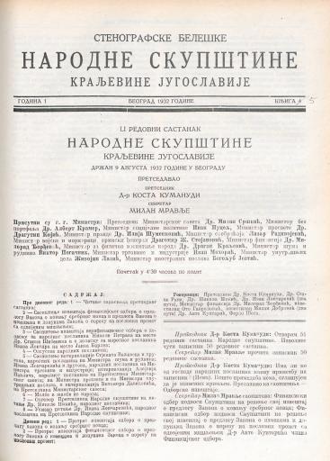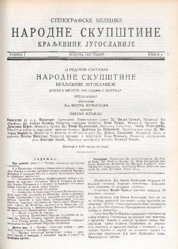SI AS 2058/35, Stenografske beležke Narodne skupščine Kraljevine Jugoslavije, 1932