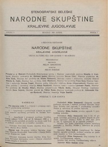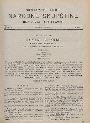 SI AS 2058/36, Stenografske beležke Narodne skupščine Kraljevine Jugoslavije, 1939