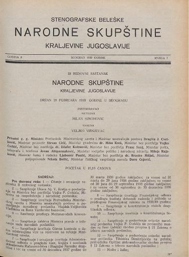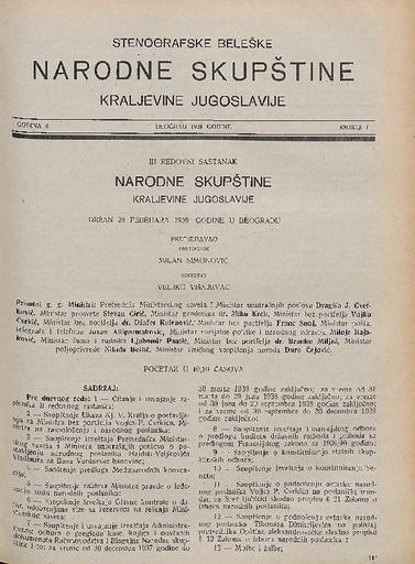 SI AS 2058/36, Stenografske beležke Narodne skupščine Kraljevine Jugoslavije, 1939