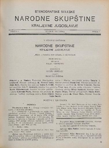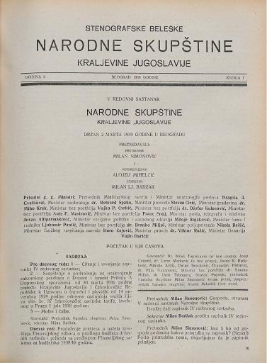 SI AS 2058/36, Stenografske beležke Narodne skupščine Kraljevine Jugoslavije, 1939